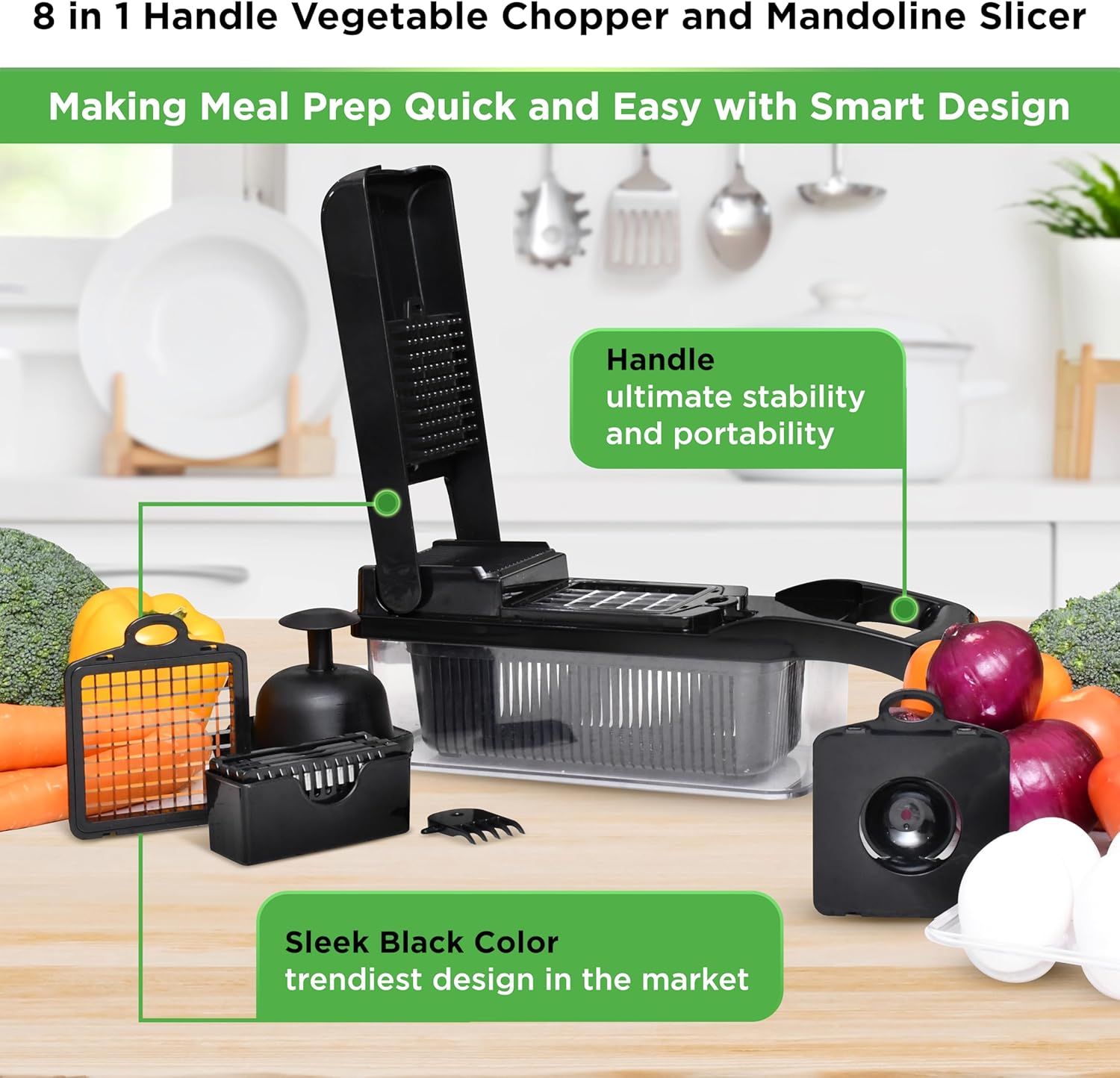 8-in-1 Vegetable Chopper & Mandoline Slicer - No-Mess Prep - Food Chopper With Container - Multi-Blade Veggie Slicer & Vegetable Dicer - Ergonomic Grip & Onion Cutter - 8 in 1, Black