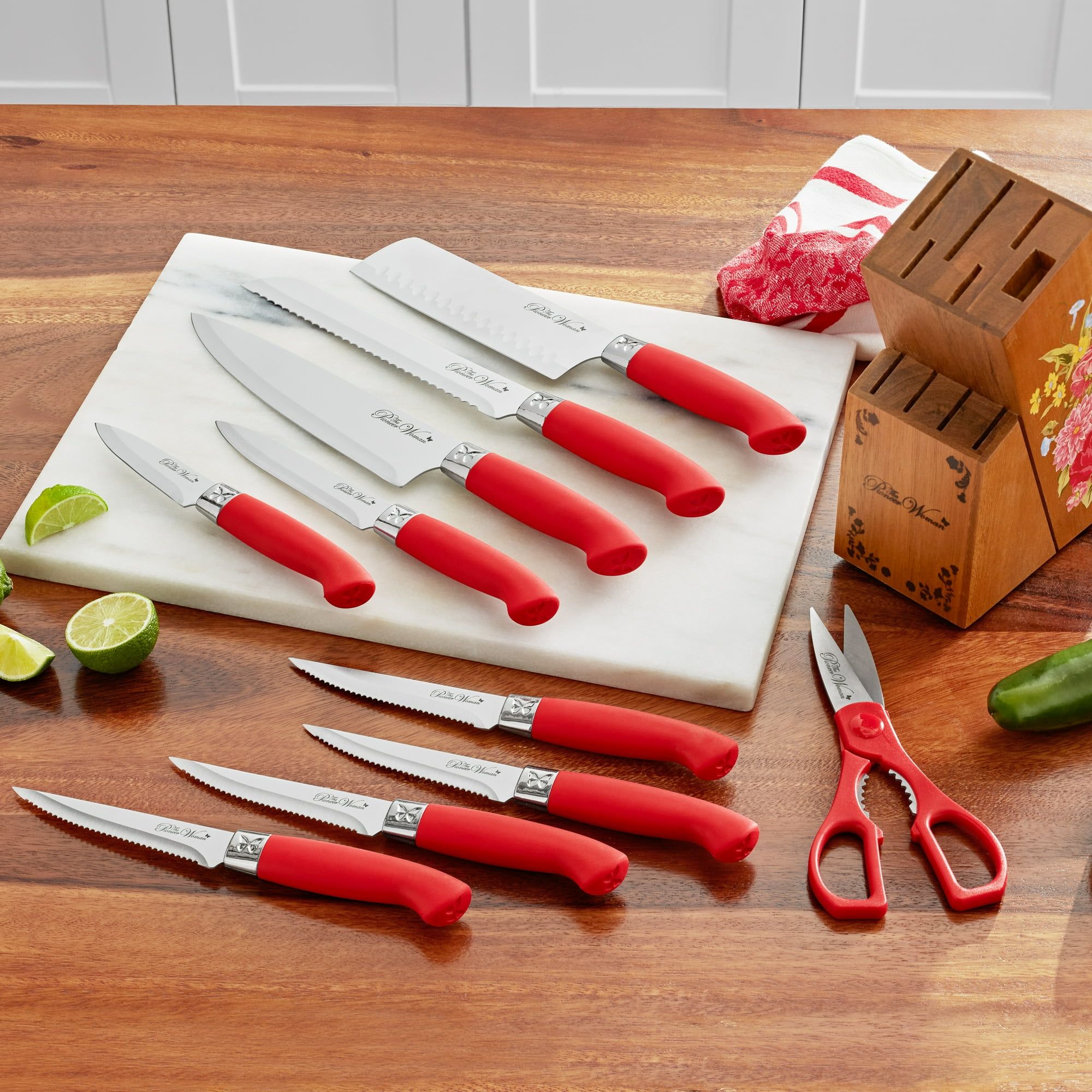Sweet Rose 11-Piece Stainless Steel Knife Block Set, Red