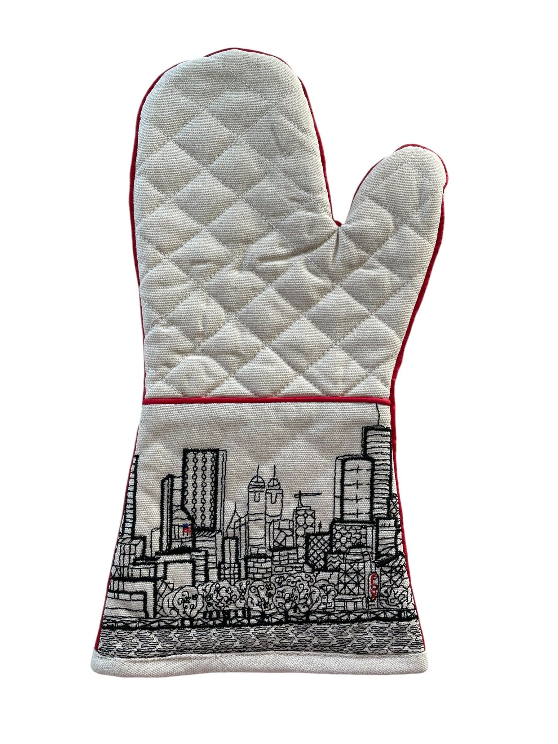 Meet Our Embroidered Skyline Oven Mitts – Where Art Meets Everyday Practicality!