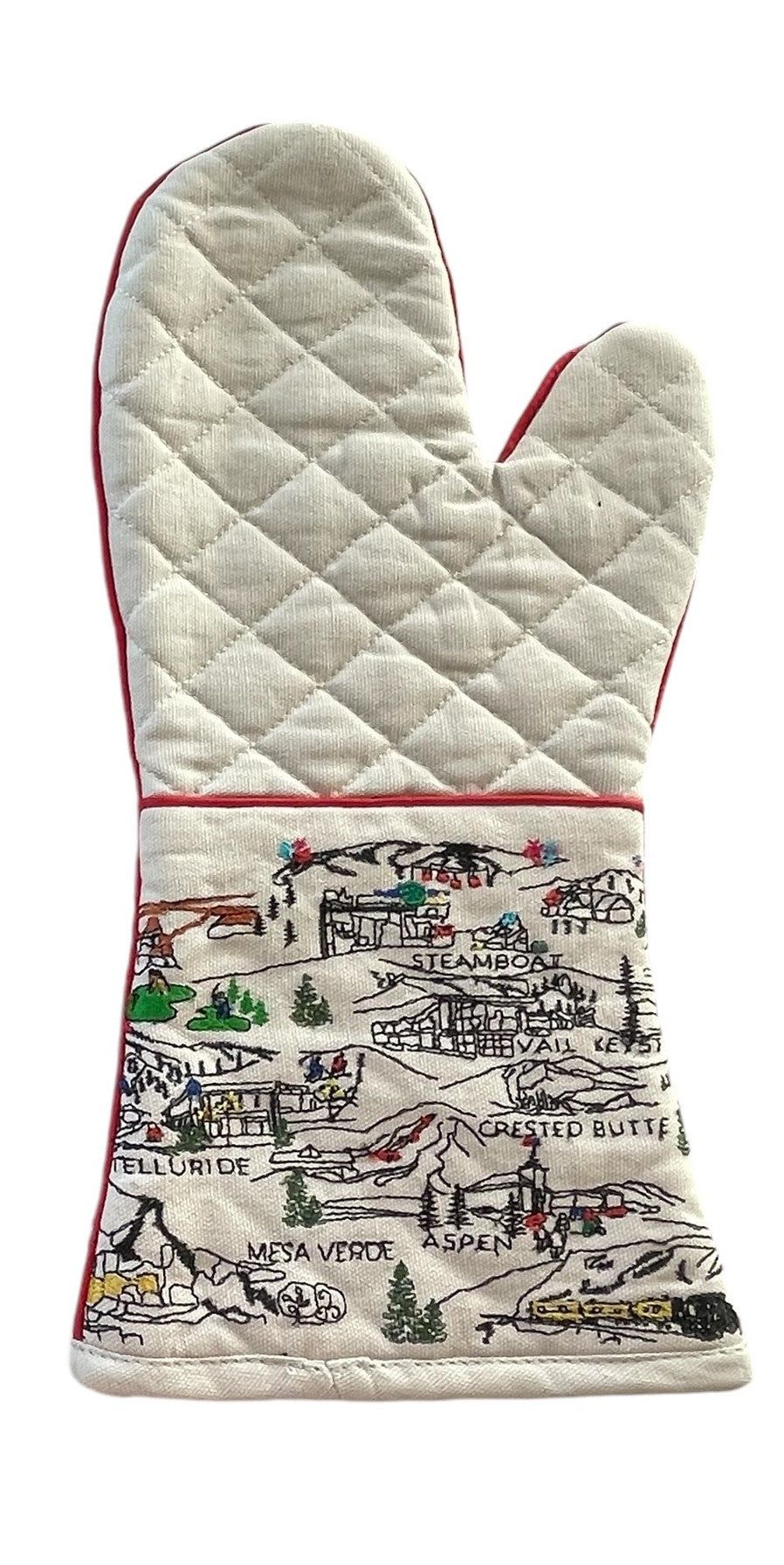 Meet Our Embroidered Skyline Oven Mitts – Where Art Meets Everyday Practicality!