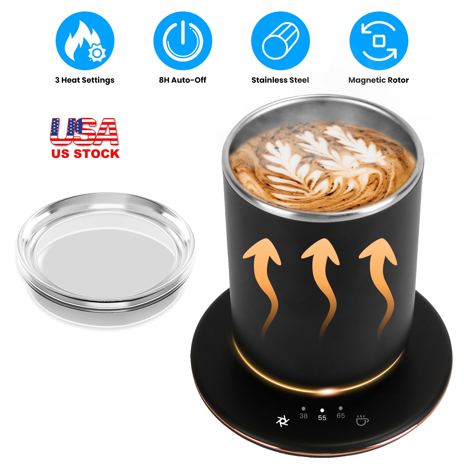 Our electric self-stirring coffee mug comes with strong-absorption magnetic stir rotor,providing 60 seconds of even stirring for both cold and hot beverages without sedimentation or separation of ingredients. 3 Heat settings can keep hot drinks at your desired temperature and optimal flavor. Made from food-grade stainless steel, it is rustproof, high-temperature resistant, free from toxic substances, definitely safe for stirring both hot and cold drinks, like tea, coffee, honey, medicine, oatmeal and more.