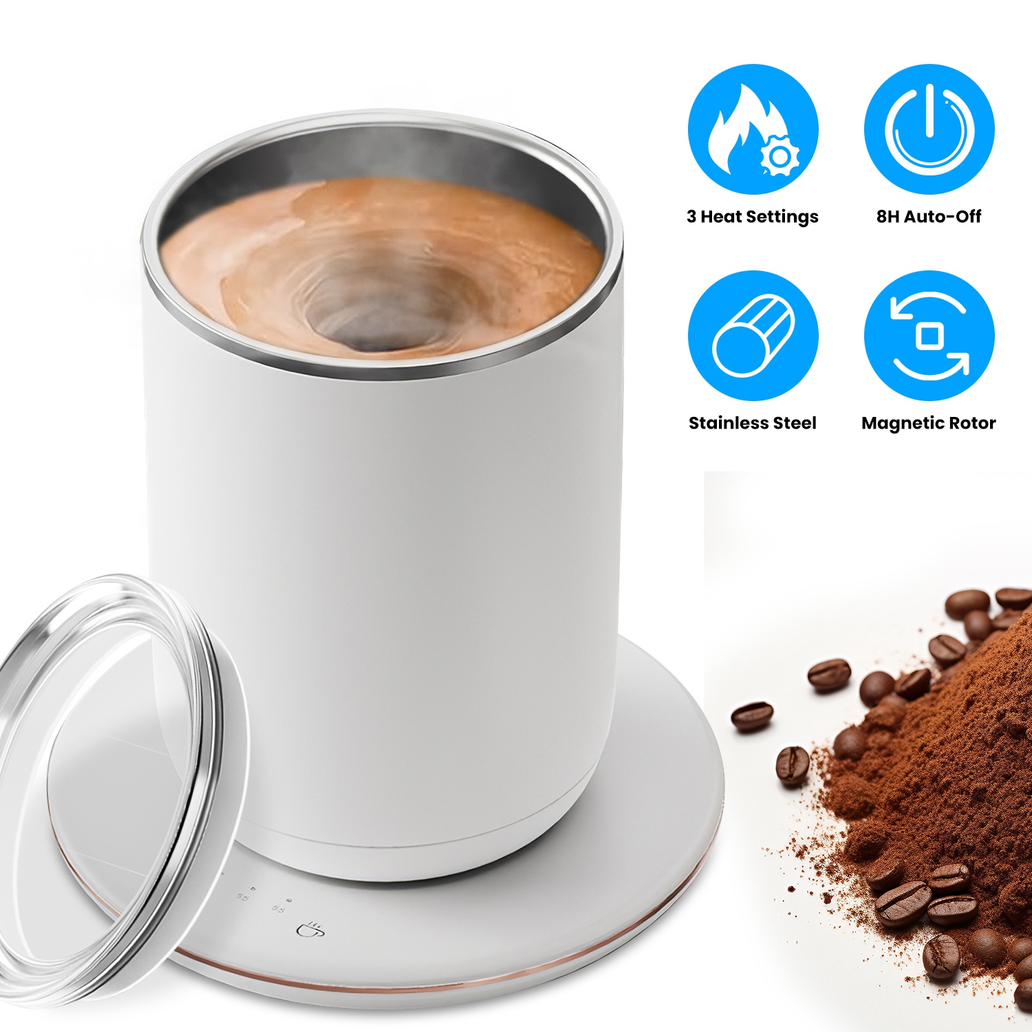 Auto Stirring Coffee Mug with Lid Temperature Control Self-Heating Automatic Magnetic Mixing Mug with 3 Heat Settings Auto-Off Function For Coffee Tea