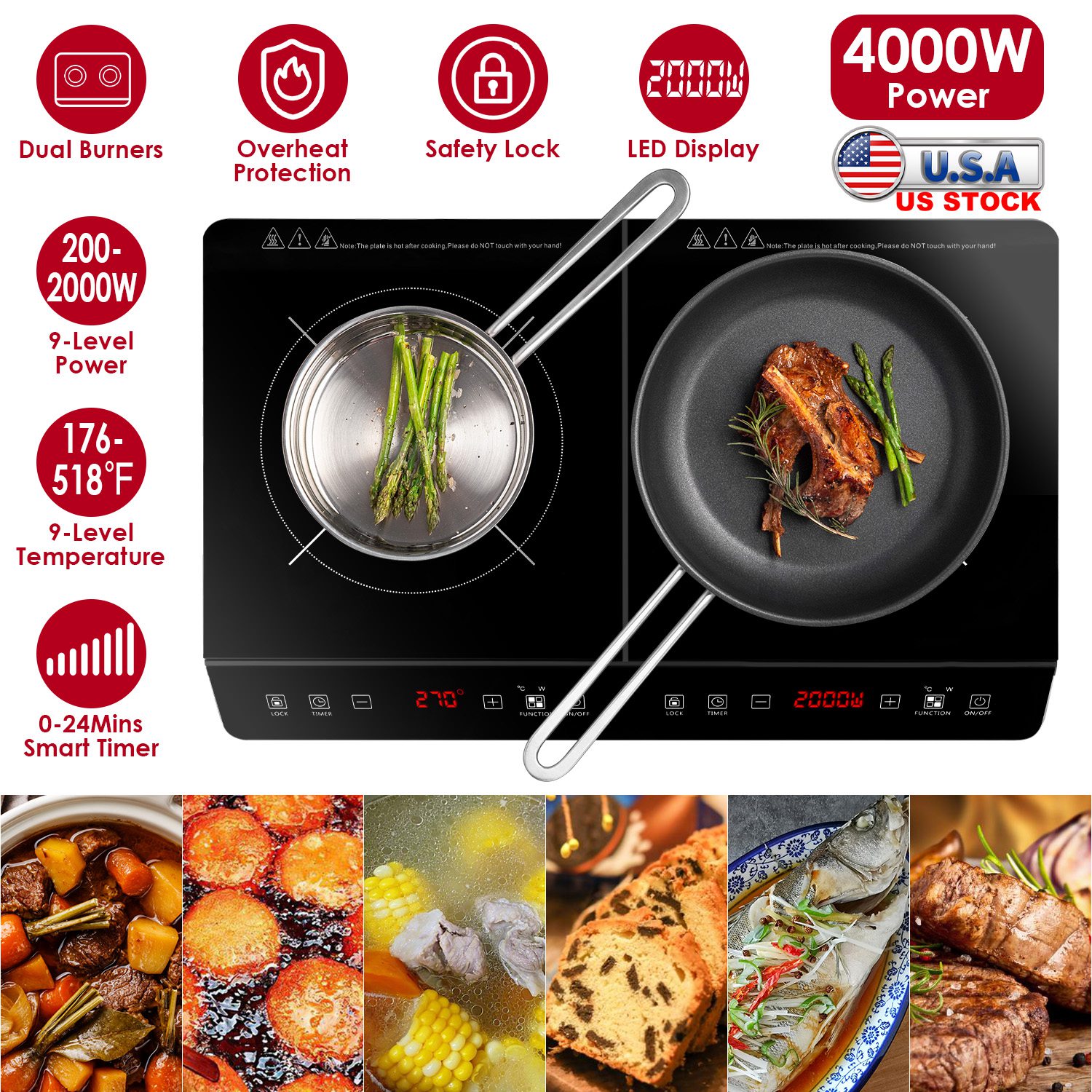 Home > 4000W Induction Cooktop Portable Double Induction Cooker Electric Dual Burner Stove Countertop Hot Plate with 9 Power 9 Temperature 0-3H Timer