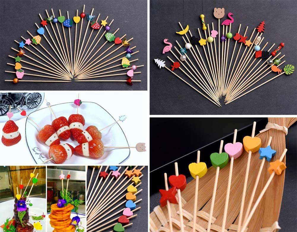 100 Pcs Bamboo Fruit Picks Fancy Cocktail Sticks Appetizer Toothpicks