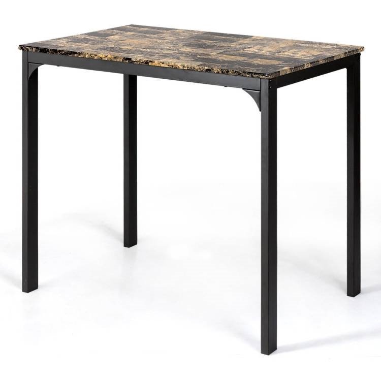 This Modern 3-Piece Dining Set Black Faux Marble Table-Top and 2 Black Chairs Stools is designed for one or two people, perfect for kitchens or dining rooms with small space. Thanks to its space-saving design, once you are done using it, you can store the stools underneath the desk, improving space utilization. You can enjoy meals or have a glass of wine with your friend or a relative. The modern and contemporary style of this set adds additional chic to your home decoration. In addition, the set is made of high-quality materials that guarantee stability and durability for many years to come. If you are looking for a dining table set like this, do not hesitate to place an order! This dining table set consists of one table and two dining stools. Thanks to its marble-style top and black-finished legs this table will bring a modern touch to your room. Stools are also designed in a contemporary style. Edges and lines are straight and fluent, adding a chic and elegant look, making this set a perfect addition to any decoration. MDF materials and the top cover made from marble-style PVC ensure years of sturdy use, while the black-finished iron frame and legs provide additional stability. The cushion of the stool is filled with sponge and the cover is made of PU leather for a cool and comfortable seating experience. In addition, iron legs of stools are durable and can support a substantial amount of weight. This dining table set is designed for a maximum of two people, making it perfect for kitchens or apartments with small space. Thanks to its space-saving design, once you are done using it, you can store the stools underneath the desk. This dining table set is ideal for various places, such as kitchens or gardens and it can be used as a breakfast table or an afternoon tea table. In addition, thanks to its lightweight design you can easily move it from one room to another. Furthermore, this table set can also be used in commercial places such as restaurants, pubs, or other places of business. Simply follow the instructions provided in the package and you will be able to assemble in just a few minutes. The top surface, PU leather surfaces of stools and iron legs are smooth, making them extremely easy to clean, by simply wiping off the stains with a cloth or duster.