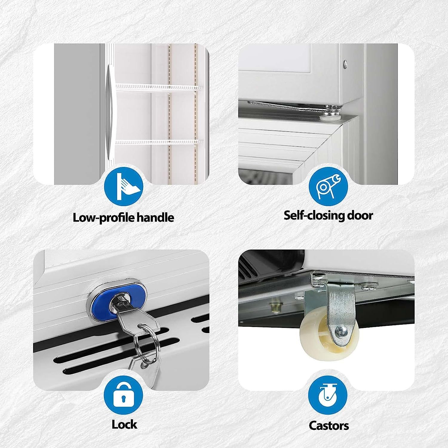 Excellent Design - The refrigerator is equipped with a door lock to keep the contents inside safe. The configuration of two feet and two casters not only ensures the stability of the refrigerator, but also allows you to move it easily when you need to move it. Adjustable shelves allow you to combine items in any order. Or simply remove to make room for larger sized items