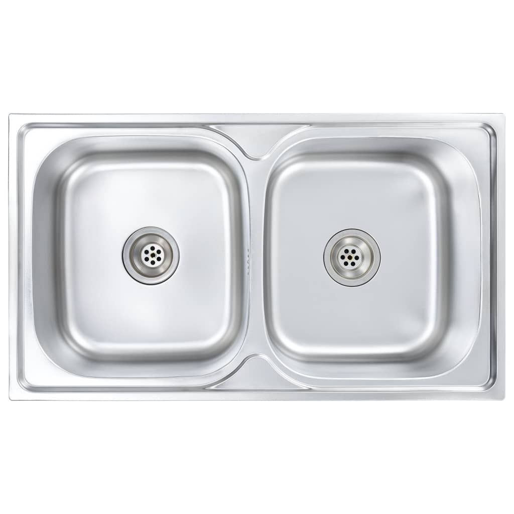 Kitchen Sink Double Basin with Strainer & Trap Stainless Steel