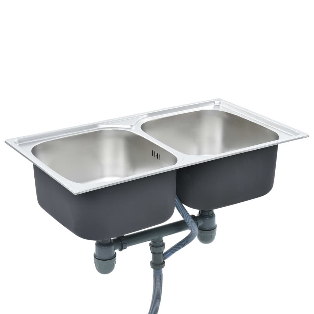 Kitchen Sink Double Basin with Strainer & Trap Stainless Steel Kitchen Sink Double Basin with Strainer & Trap Stainless Steel Kitchen Sink Double Basin with Strainer & Trap Stainless Steel