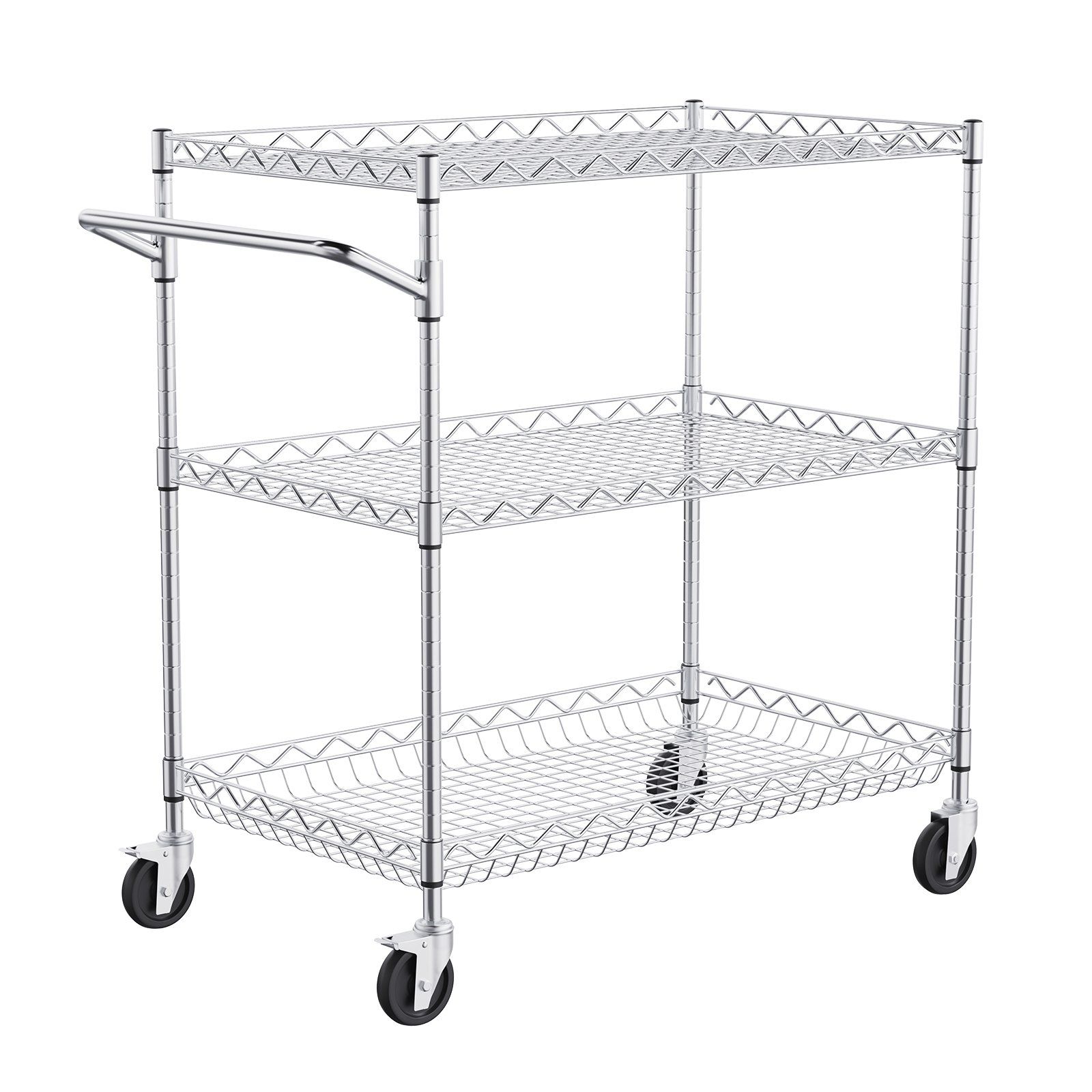 Number of Shelves: 3,Max. Load Bearing: 661 lbs / 300 kg,Model: TR301832B3CW,Product Weight: 20.8 lbs / 9.45 kg,Frame Material: Chrome,Number of Wheels: 4,Product Dimensions: 30" x 18" x 32.4"