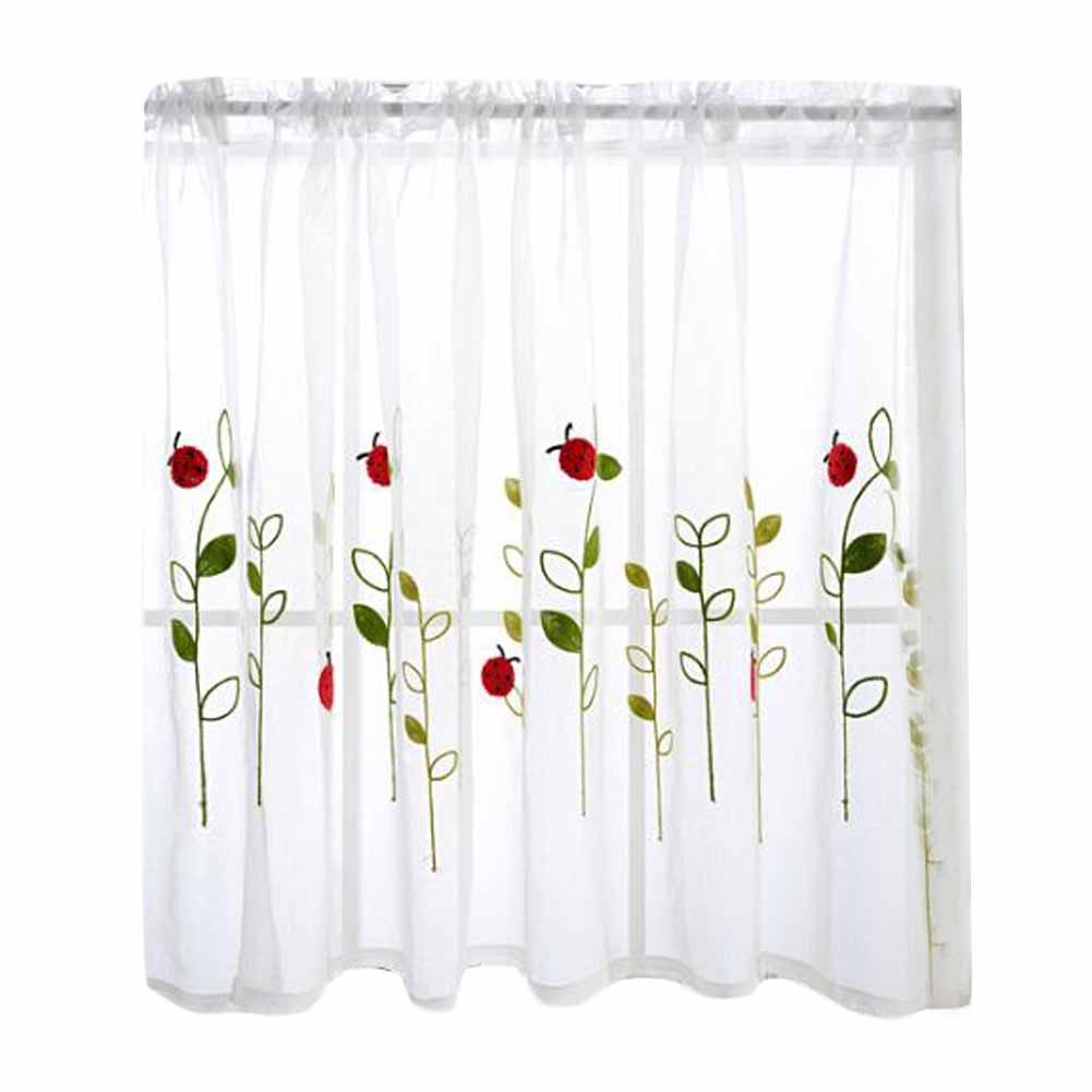 Semi-Sheer Half Cafe Window Curtain Short Cabinet Curtain Lace Embroidery Curtain, Ladybird,59x30 inch Semi-Sheer Half Cafe Window Curtain Short Cabinet Curtain Lace Embroidery Curtain, Ladybird,59x30 inch