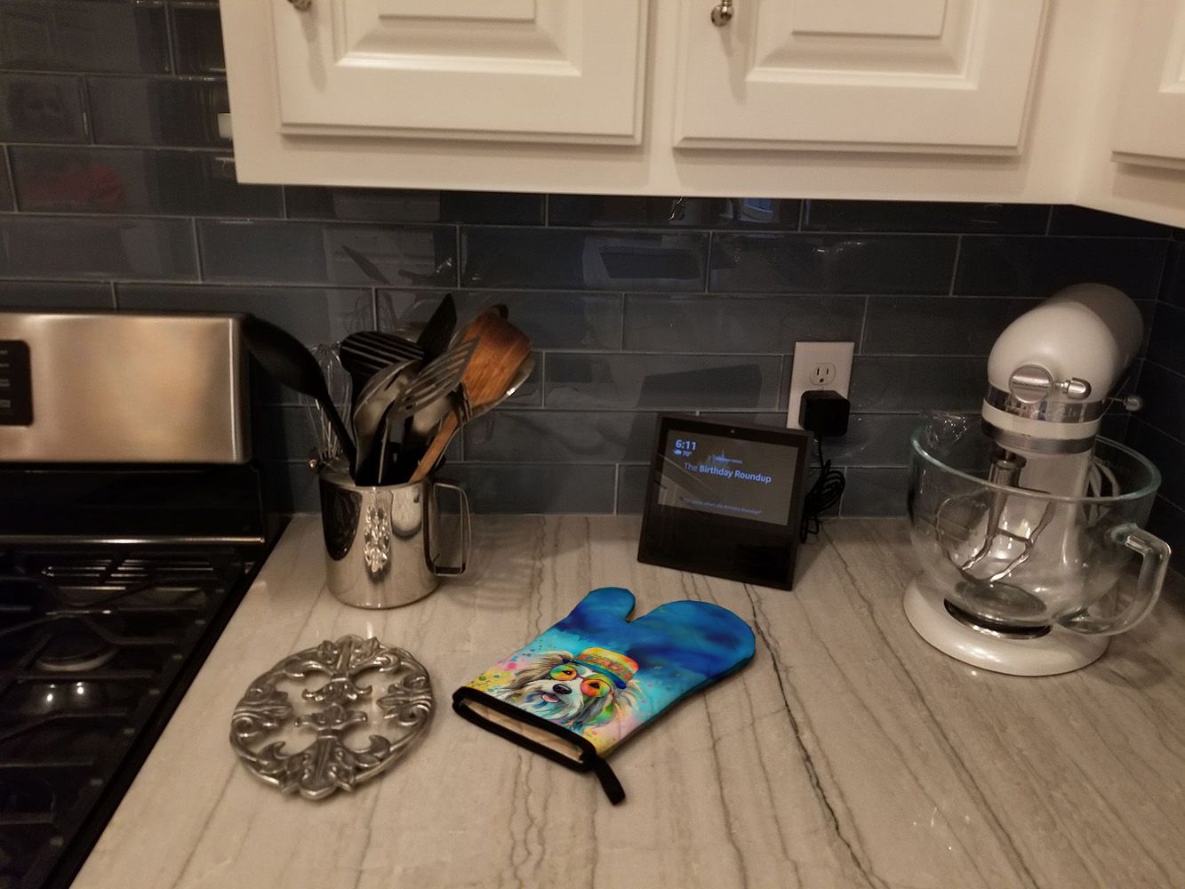 Oven Mitt featuring breed specific Bearded Collie artwork. Presenting our Large Right Hand Thick Heat Resistant Oven Mitt, an indispensable tool for any culinary enthusiast. This mitt boasts layers of quilted protection on both sides, providing outstanding resistance against extreme heat. Embellished with beautifully printed artwork, it adds an extra dash of charm to your kitchen decor. At about 12 inches long and 8 1/2 inches wide, this oven mitt offers a generous fit, accommodating a diverse range of hand sizes. Its design is enhanced by a sleek Black bias tape trim, finished with a convenient hoop for easy hanging. Fresh out of the packaging, the quilting process may give the mitt a stiff feel, but rest assured, it will soften with use and washing. Our mitt is crafted with a unique center fabric, Insul-Bright, a composite material made from polyester fibers, needle-punched through a nonwoven substrate and a reflective metallized film. This smart material resists both conduction and radiant energy, reflecting heat back to its source, all while remaining breathable. Our oven mitt is machine washable and safe for tumble drying. It's a perfect gift for your favorite Chef, BBQ enthusiast, or just a little treat for yourself! Experience safety, style, and convenience rolled into one with this exceptional oven mitt.