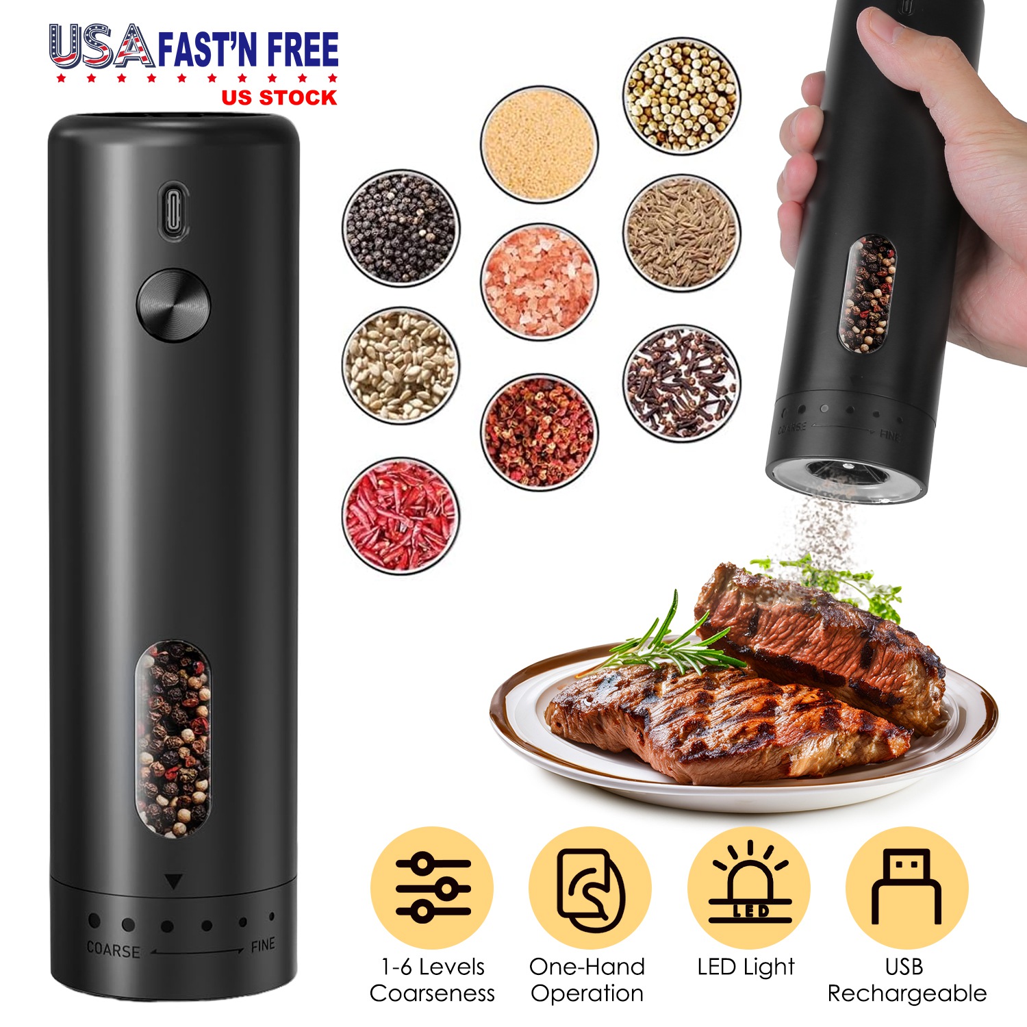 Electric Pepper Grinder USB Rechargeable Pepper Mill Automatic Salt Grinder with 6 Adjustable Coarseness LED Light 110ML/3.72OZ Container One Hand Ope Electric Pepper Grinder USB Rechargeable Pepper Mill Automatic Salt Grinder with 6 Adjustable Coarseness LED Light 110ML/3.72OZ Container One Hand Ope Electric Pepper Grinder USB Rechargeable Pepper Mill Automatic Salt Grinder with 6 Adjustable Coarseness LED Light 110ML/3.72OZ Container One Hand Ope Electric Pepper Grinder USB Rechargeable Pepper Mill Automatic Salt Grinder with 6 Adjustable Coarseness LED Light 110ML/3.72OZ Container One Hand Ope Electric Pepper Grinder USB Rechargeable Pepper Mill Automatic Salt Grinder with 6 Adjustable Coarseness LED Light 110ML/3.72OZ Container One Hand Ope