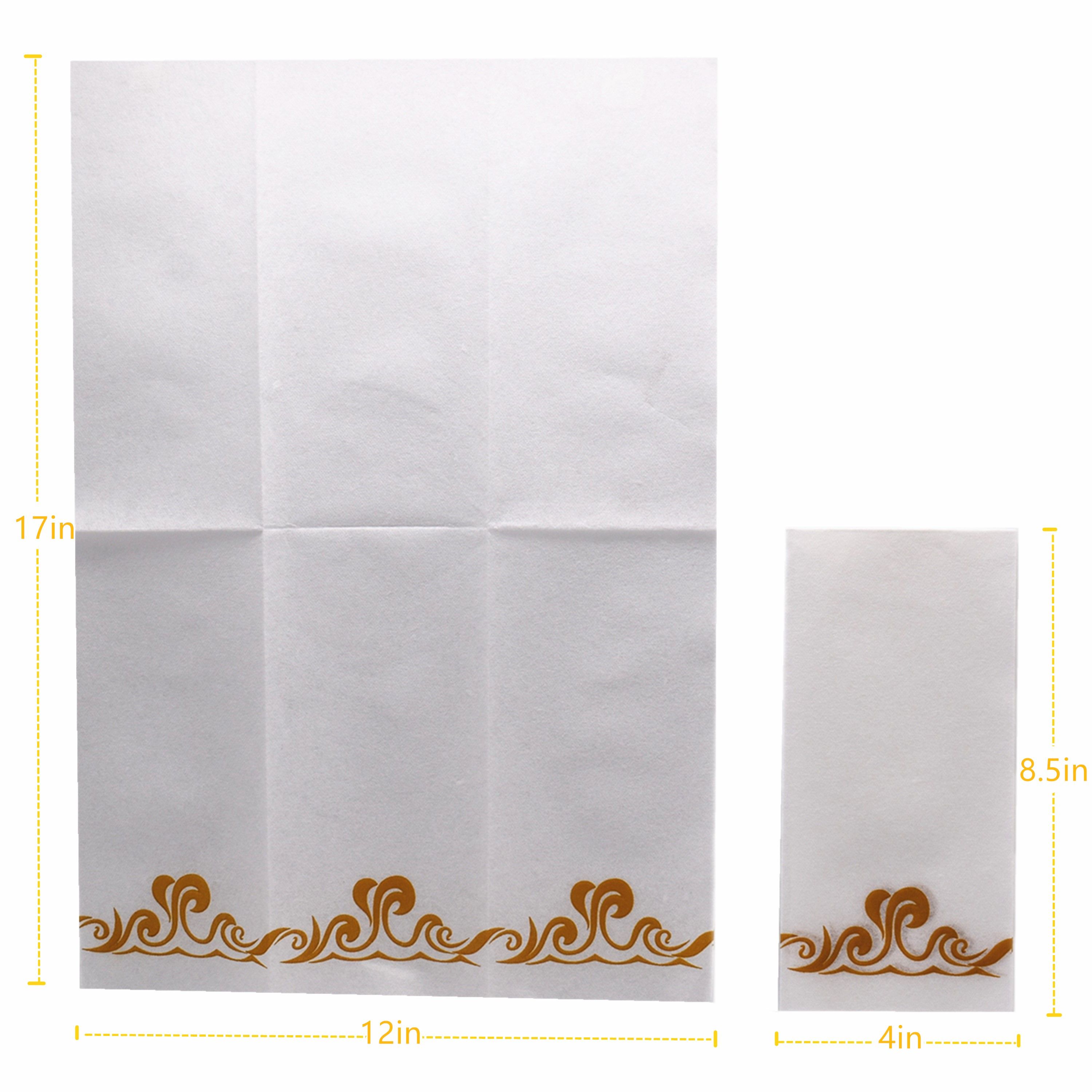 3.100Soft Linen Feel,Cloth Like:This set comes with 100 decorative paper towels,Has the look and feel of linen, but with the cost effectiveness and disposable convenience of paper, made for a one time use to keep tidy. Just like a good bathroom hand towel, these disposable cloth napkins provide greater.