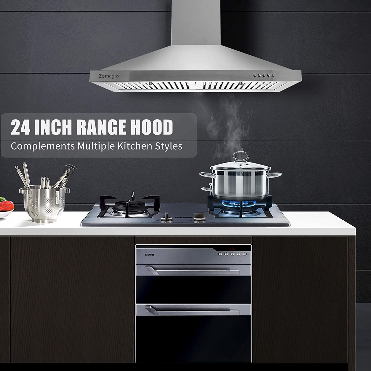 Home > 24 Inch Range Hood, Wall Mount Vent Hood in Stainless Steel with Ducted/Ductless Convertible Duct, 3 Speed Exhaust Fan, Energy Saving LED Light