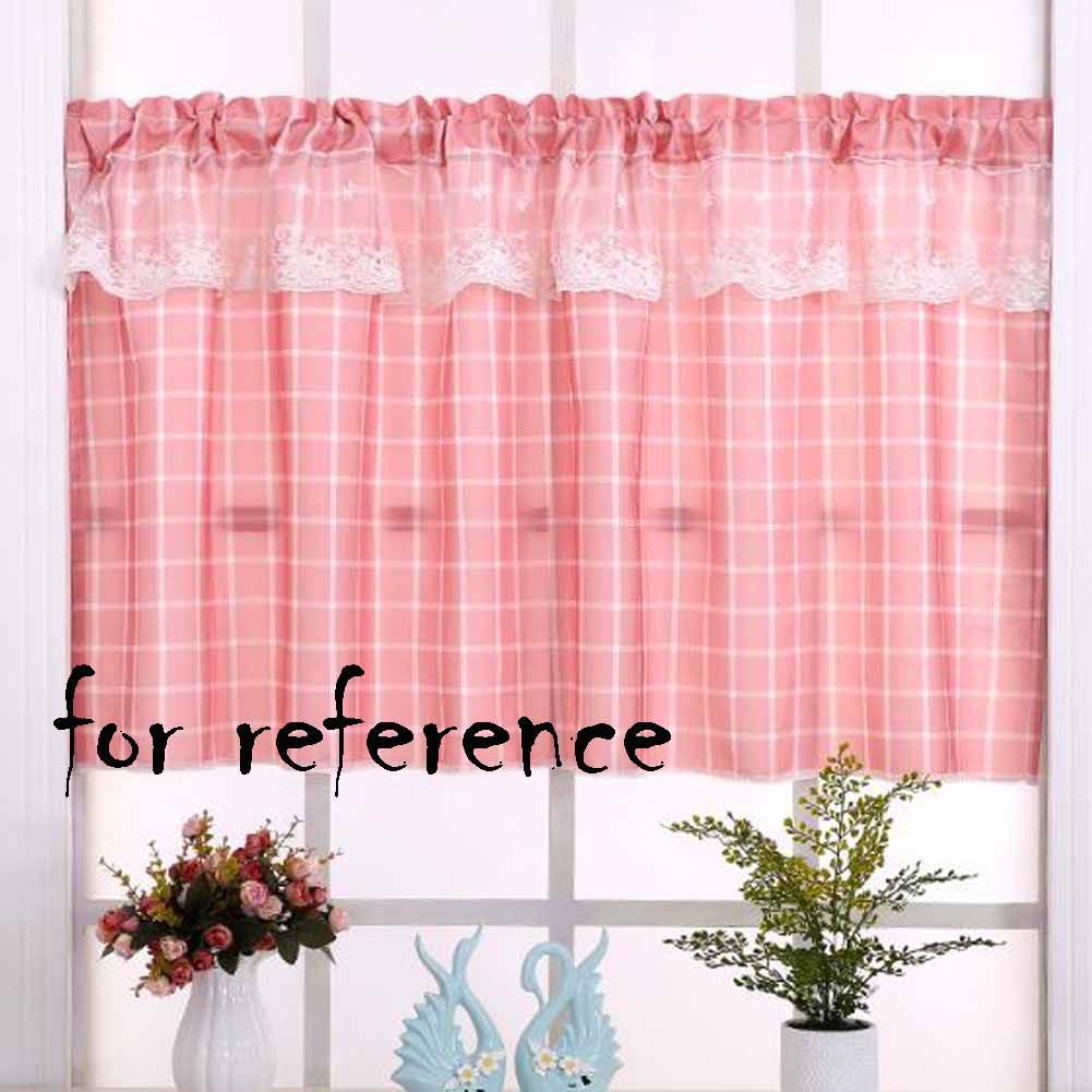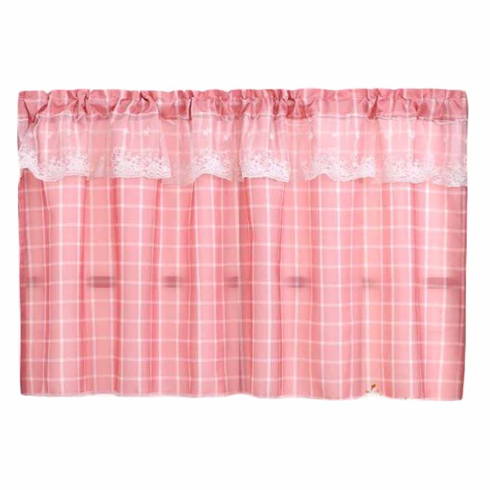 Home > Pink Plaid Cafe Kitchen Curtains Half Window Curtain Bedroom Doorway Curtain, 55x24 inch