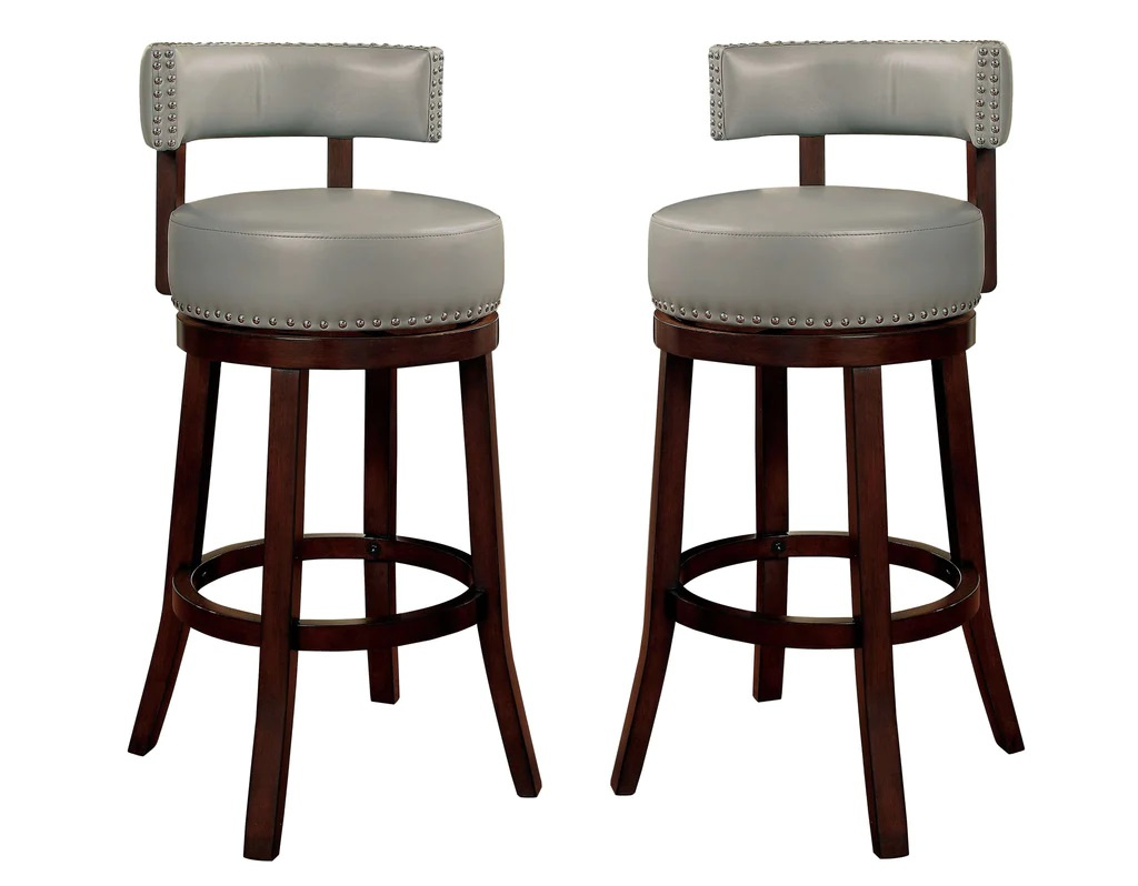 Home > Sherly Set of 2 Bar stool 30" Swivel Stool Dark Oak Solid wood Dark Gray Leatherette Chairs Dining Room