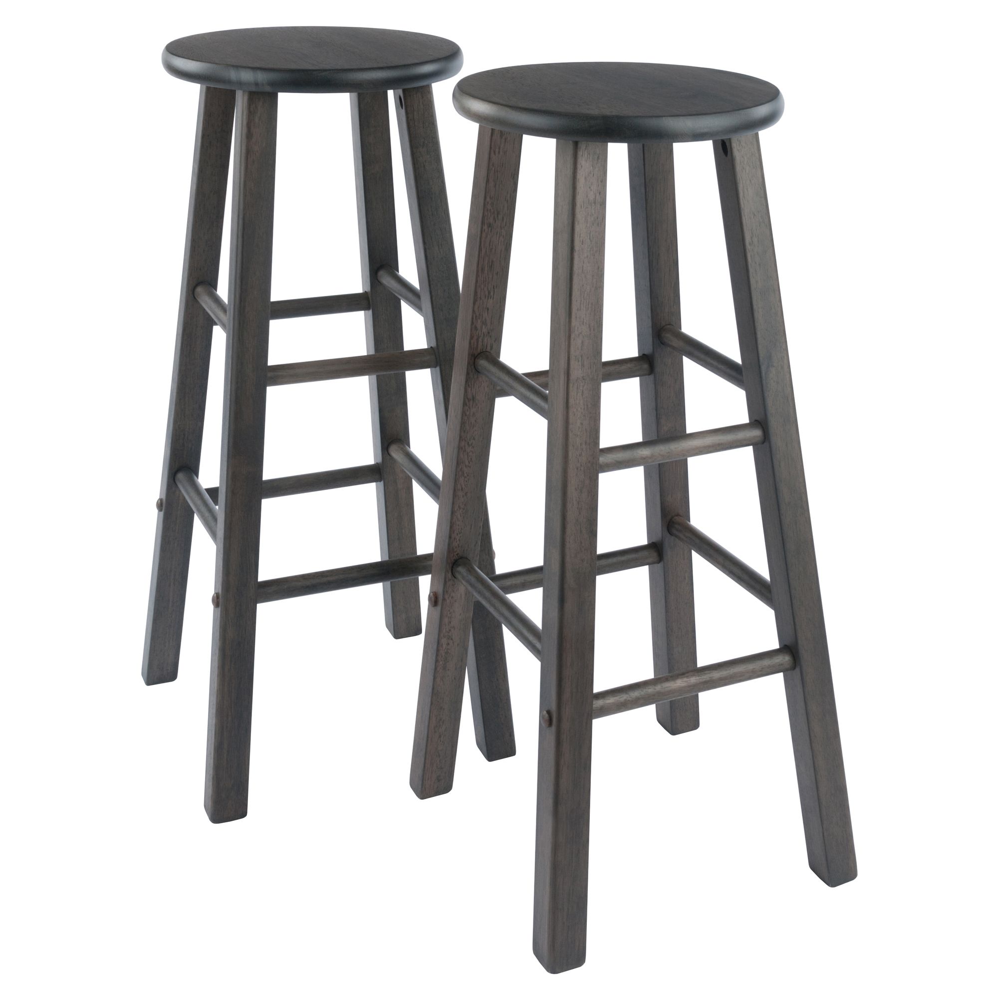 Spruce up your kitchen; breakfast nook; or basement bar with this Winsome Wood Element Bar Stool Set. Finished in a contemporary oyster gray finish; these stools feature a simplicity of design blending seamlessly with any decor from modern to farmhouse. Crafted from study solid wood these counter stools are designed to help you coordinate with a wide variety of furnishings. The square legs and round seat have a sturdy built offering a supportive foundation and hold a static weight of 220lbs. Featuring 8 crossbars; high and low on all four sides; for stability and strength while also serving as convenient footrests; making this stool not only functional but also comfortable. Ideal for extra seating; accommodating guests at gatherings and ideal for everyday use. These 13.58'W x 13.58'D can easily be tucked away when not in use. Like most Winsome stools; the Element collection is available in multiple finishes and like most Winsome stools are available in both bar and counter height. Conveniently packed and shipped in one box; that includes the hardware necessary for assembling. Replacement part request can be submitted directly to the manufacturer within 60 days from date of purchase.